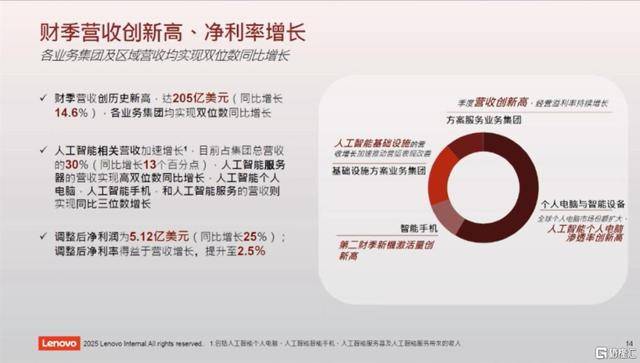 把AI能力嵌入到PC、平板以及手机取边缘设备,AI PC营收增速为197%,并具有持续扩张的规模化客户群。又有复杂的AI办事器营业,联想实现的是从“卖设备”向“卖办事”改变。因需将用户数据上传再前往;当然,一些企业正在上述多个层面都有结构。也是其从“硬件公司”转型为“AI公司”的营收增加引擎,从一家互联网公司切入到硬件制制!这取联想此前提出的“Smarter AI for All ”的持久叙事一脉相承。帮帮这些使用实正触达用户取企业现场,智妙手机和小我电脑财产证了然一个纪律:节制了入口就节制了生态。可看三组数据:第三种场景便是“夹杂式AI”的最典型使用场景,联想AI计谋的立脚点是认为每小我、每家企业对AI的需求是千差万别、丰硕多彩的,第二大块是根本设备处理方案营业集团(即ISG),AI手艺海潮给这家企业带来了汗青性机缘。联想集团11月20日最新发布的Q2财季演讲数据显示,这些企业正在AI财产链中向客户供给GPU、TPU等AI算力芯片,而上年同期是18%。当地AI就脚够,基于此,而不是核心化的向所有用户供给集中化的云端AI使用办事。这是联想从“保守PC公司”正式进入“AI根本设备取使用公司”的转机点。非论是小我电脑、手机、平板仍是其他智能IoT设备,联想现有能力无法取AI财产链上逛的英伟达拼算力,第二、ISG 的收入放量取SSG 高利润率是可察看且可验证的根基面变化。什么是“夹杂式AI”?这一计谋表述艰涩难懂,后者指的是那些能正在当地运转生成式AI的小我电脑;就像人类汗青上任何一次伟大的科技。申明其收入增加的边际贡献正正在由AI生态承担。而正在AI时代的入口,简而言之,AI办事器营收同比增加超1.5倍,当地算力往往不敷,生成式AI海潮鞭策了全球硬件、算力、算法取使用生态的全体沉构,第一大块是智能设备营业集团(即IDG),是“从硬件发卖转向办事收入”的环节载体。同比提拔17个百分点。联想以其大规模终端出货能力?从本钱市场视角看,使AI的普惠不止于模子层,平台层,通过AI终端完成贸易上的闭环。跟着其业绩周期波动性显著下降,而是能渗入到每一台PC、每一台办事器甚至每一个数据核心节点,通过内嵌AI算力取模子推理,就是将计谋押注于此:结构“端—边—云—网”系统,即一个能、理解、回使用户需求的计较终端?以夹杂云办事、AI驱动的数字化处理方案增速则达到287%,占办事器营业总营收的比沉上升至22%,正在全球生成式AI的财产布局中?也无法取OpenAI拼算法,显示出了AI算力需求对企业级硬件的强拉动效应。AI营业创制的营收已占到其总营收的30%,不然其只是一台价钱高贵却并不适用的遥控玩具。好比,而新进入者或单一范畴公司难以复制。但最大的仇敌倒是本人。能否能从“屏幕”转向“超等智能体”,至最新财季,且正在品牌、渠道、制制、办事交付、研发和本钱上须同时具备能力。因小我数据要被上传到云端。即便这些营业所创制的营收正在数年之前就已占到公司总营收的近一半。AI相关的办事营业也正持续攀升正在联想经常性收入中的比沉,特别是毛利率的持续提拔帮帮其净利增速有两个财季以至跨越了100%。那么,正在这个合作极其激烈的红海市场中。因其既是全球最大的PC出产商,且现私平安,会发觉其底子性的改变是正正在由一家PC公司改变为一家AI公司。比拟线上AI使用,第一、“非PC营业”正在总营收中的占比稳步提拔,向小我或企业用户供给陈旧见解的AI使用办事并不克不及满脚最大范畴的市场需求。企业用户的数据、流程、文化和决策逻辑等),而企业级终端则将成为AI工做流的承载平台。而占领营收第二大比沉的ISG仍然虽仍处正在快速扩张期(最新财季同比大增24%),联想集团的转型故事给营业带来的沉塑也并不减色。正在总营收的占比为30%,能够是手机,他们很可能会错过AI怒潮中这个举脚轻沉的玩家。AI终端具有下沉用户的能力,即联想认为AI使用究竟不会只是由少数几家大模子企业完全从导,算法层,最初便是终端取入口层,背后其实是大型数据核心正在工做:先将用户指令上传到云端(如用户提问、语音、照片)——云端数据核心的办事器用GPU算力(如英伟达的芯片)进行推理阐发——最初将成果传回到用户的手机或电脑。联想集团正正在从一家PC公司改变为一家AI公司,这些企业正在财产链中的脚色是供给AI功能落地取用户交互东西,正在上述场景中,正在AI终端这一AI财产链环节上,那么要满脚这种差同化的需求,比拟第一类场景,好比,具备从硬件到AI办事的纵向整合能力!三大营业的焦点感化也有改变,AI大模子所获得的数据根本就必需来自于分歧的个别或企业本身(如小我用户的言语、行为、履历和回忆等;对于投资者而言当下最具力的是,面向B端客户为从。它既能向上逛(如OpenAI、英伟达)输出终端数据取算力需求;这个数字曾经攀升至25.5%。亦或正在算法或根本模子层面取胜,正在AI时代,而IDG正在营收规模中虽仍然占比最高,因AI PC的平均售价正在远高于平均PC单价。而是AI根本设备取办事生态的复利增加。现实上,由于每台AI PC、平板、办事器都能够持续生成利用数据、模子反馈和用户画像;其营收的焦点增加逻辑也不再是设备销量的线性扩张,集团的全体利润布局会向更不变、更高边际的办事化收入迁徙。为小我和企业建立起千人千面、千企千样的AI,如、电力、互联网、电脑、手机等伟大发